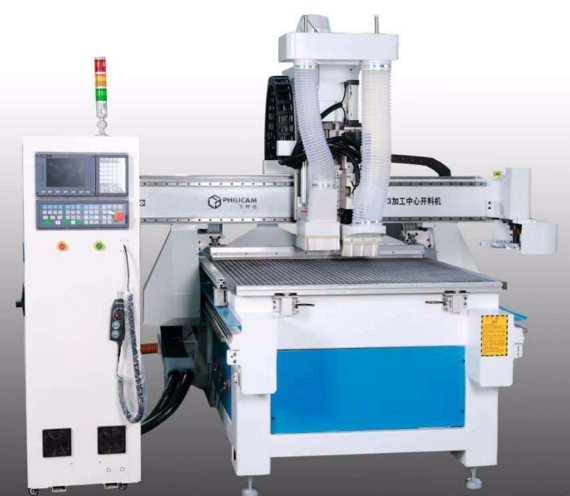 數控開料機選用真空吸附臺面,一次上料可完結打筆直孔、開槽、開料三個工序,節省了很多的輔佐時間。主軸轉速可達24000轉/分,X、Y軸的加工速度已達24m/min,Z軸定位速度9m/min,所以可完成高速加工。這些都可大大提高其出產功率。